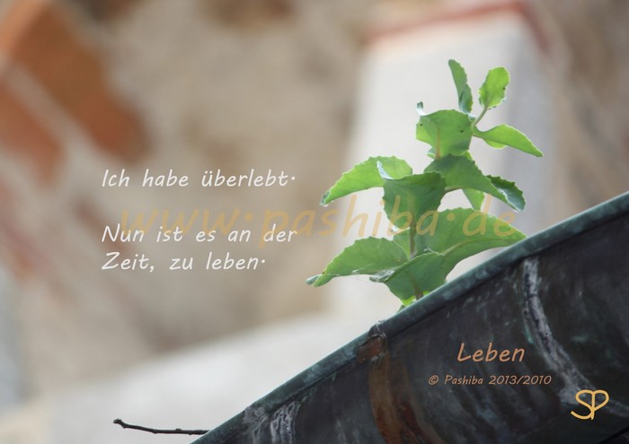 "Das Leben ist ein langer Fluss. Für manche ist es ein kleiner, locker vor sich hinplätschernder Bach, für andere ein reißender Strom.Und manche bekommen es noch einmal geschenkt." (Pashiba 2015)