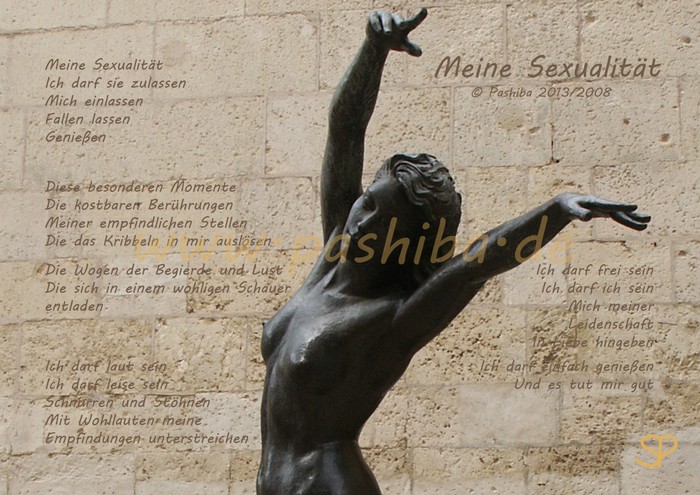 "Sexualität - nicht jedermanns Sache und doch in jedem drin.Oft ein Tabu, ist und schenkt Sexualität Leben." (Pashiba 2015)